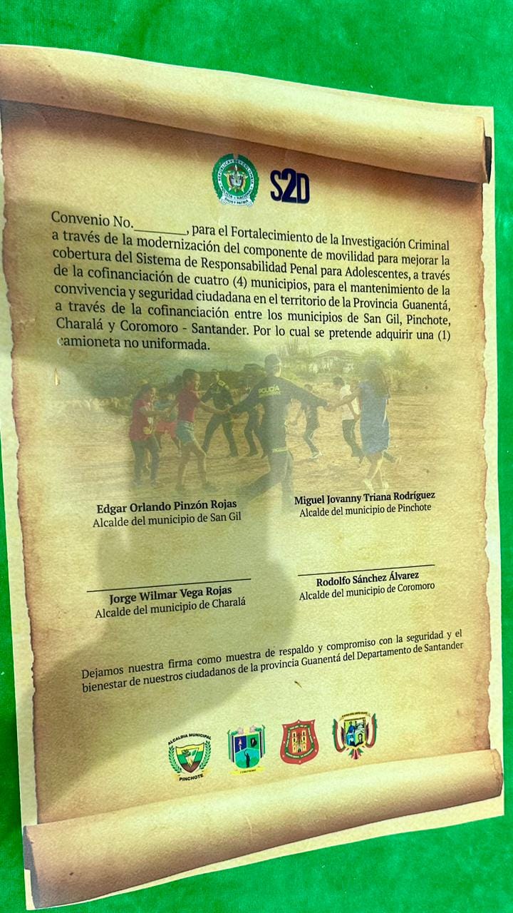 De igual manera, en un esfuerzo por fortalecer la investigación criminal y mejorar la cobertura del sistema de responsabilidad penal para adolescentes, se llevará a cabo la adquisición de una camioneta no uniformada. Esta acción está dirigida a modernizar el componente de movilidad en los municipios de San Gil, Pinchote, Charalá y Coromoro, en la provincia de Guanentá, Santander. La iniciativa se formalizó mediante un acta que incluyó la firma de respaldo y compromiso de las autoridades por la seguridad de la provincia.