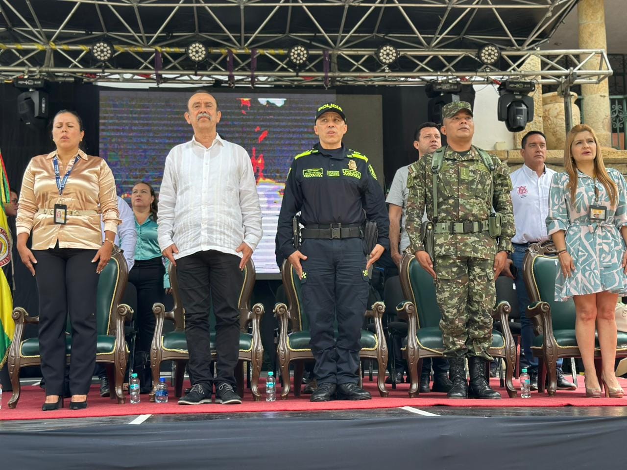 El acto protocolario se llevó a cabo en el Parque Principal de San Gil, contando con la presencia de autoridades locales, el comandante del departamento de Policía Santander, el comandante del Distrito de Policía y líderes comunales.