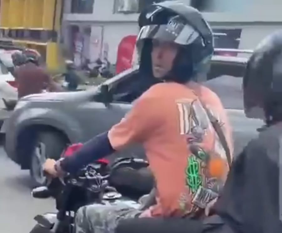 El conductor de la moto testifica: “Acaba de robar, ¿está contento?”, mientras sigue el escape y documenta las placas del vehículo.