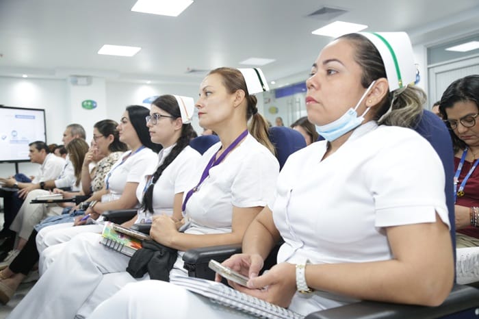 Acompañado por la Dra. Alix Carolina Soler Parra, Subgerente de Apoyo Diagnóstico; Jefe Marisela Márquez Herrera, Subgerente de Gestión para la Docencia e Investigación; Dra. Gloria Lucía Quiroz Hernández, Subgerente de Alto Costo; Dr. José Orlando Quintero Correa, Subgerente Médico; Dr. Ariel Alfonso Ximénez Escobar, Subgerente de Servicios Ambulatorios y Apoyo Terapéutico; Ing. Vladimir López Barón, Subgerente Administrativo y Financiero; y el Ing. Juan Carlos Niño, Asesor Financiero, Hoyos Lanziano compartió con un auditorio compuesto por médicos y enfermeros los resultados de un arduo año de trabajo.