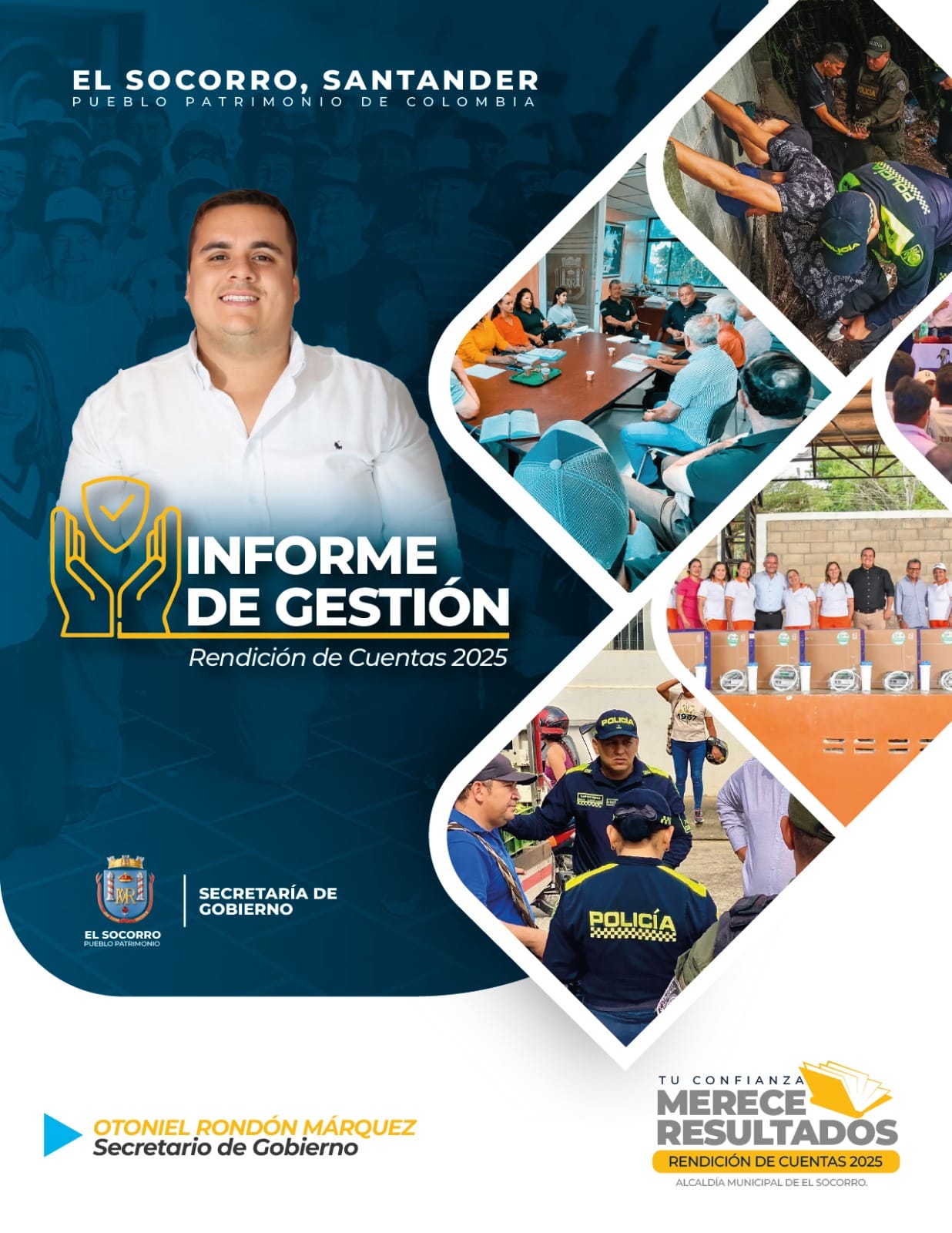 La Secretaría de Gobierno de El Socorro, liderada por Otoniel Rondón Márquez, presentó su informe de gestión correspondiente a la vigencia 2025, un año en el que la seguridad, la convivencia, la participación comunitaria y la protección de derechos humanos fueron los pilares centrales de la administración municipal.