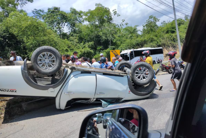 Este domingo 20 de abril de 2025, a la 1:40 de la tarde, una camioneta Mitsubishi Tritón se volcó al descender por el sector de La Cemento, en la carretera que une Bucaramanga con Rionegro.