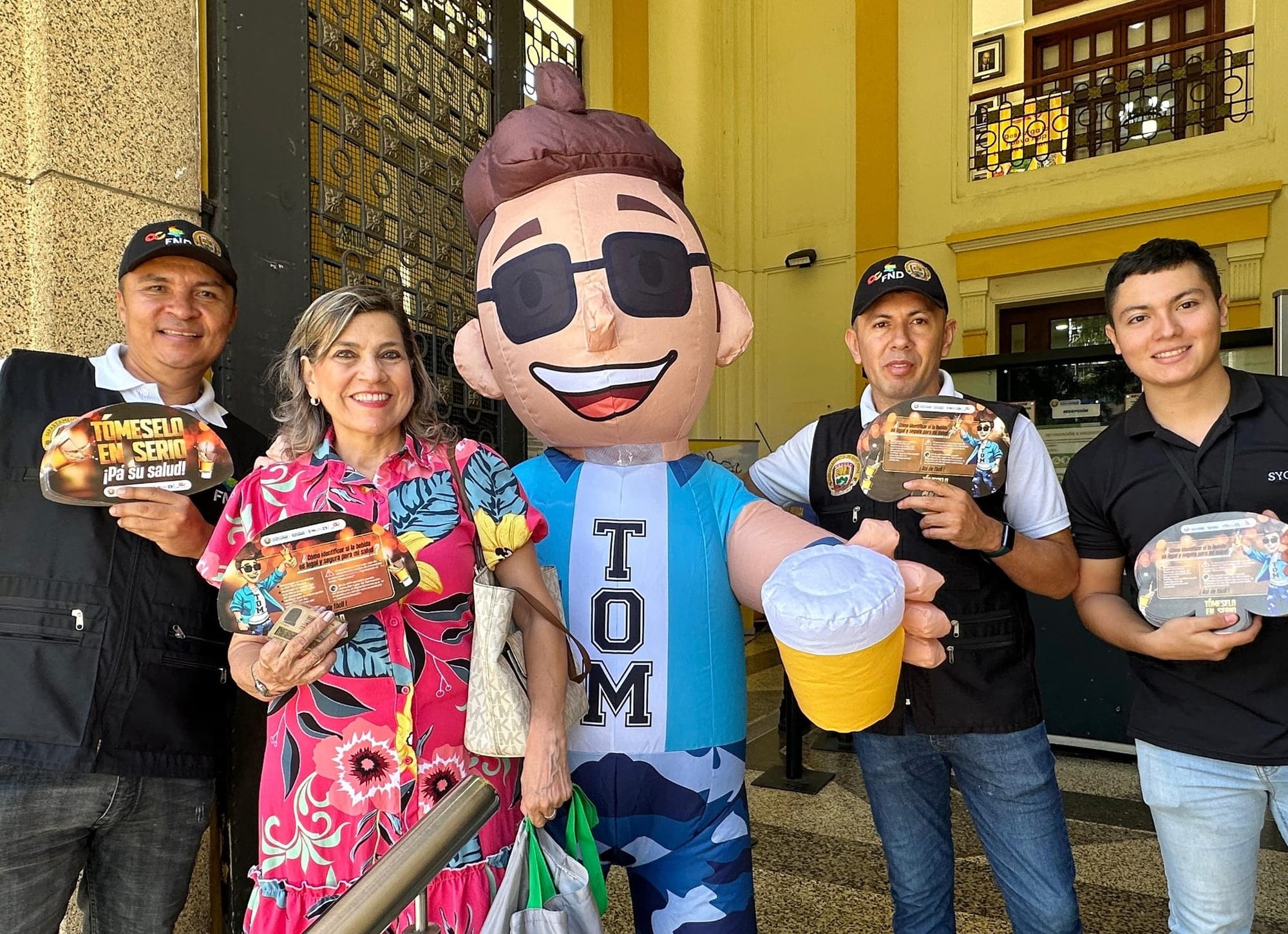 El embajador de la campaña #TómeseloEnSerio, ¡pa’ su salud!, Tom asumió la dirección y mando de la acción en el Palacio Amarillo. Junto con el Grupo Operativo Anticontrabando recibieron a funcionarios y visitantes con un mensaje claro: consumo legal y responsable.