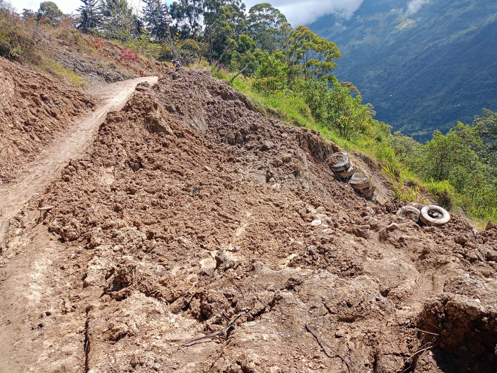 “El terreno sigue cediendo. Si pasa una volqueta o una moto cargada, puede venirse todo abajo. Pero es lo único que tenemos para ir al pueblo o llevar los niños al colegio”, explicó otro campesino del sector de La Montañita.