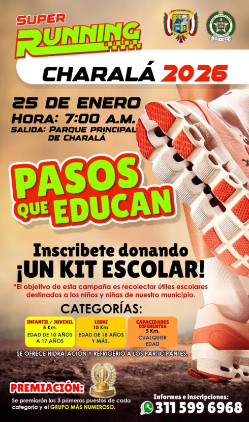 No es solo una carrera, es una causa. Este 2026, Charalá se pone los tenis por una razón poderosa: correr para educar. La Policía Nacional de Colombia, a través del Departamento de Policía Santander, realizará el primer Running Charalá 2026, una jornada deportiva y solidaria que busca transformar pasos en oportunidades para los niños, niñas y adolescentes del municipio.