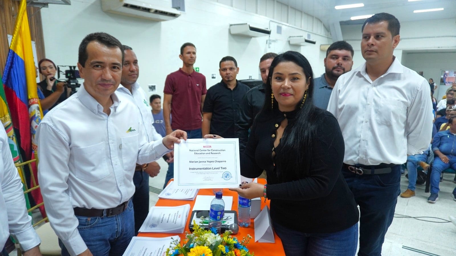 Formación, empleo, fortalecimiento institucional y emprendimiento A través de la alianza con el SENA y Fundesmag, se inició recientemente un programa de certificación laboral internacional (NCCER) en soldadura, pailería, tubería e instrumentación, dirigido a más de 400 trabajadores de Barrancabermeja.