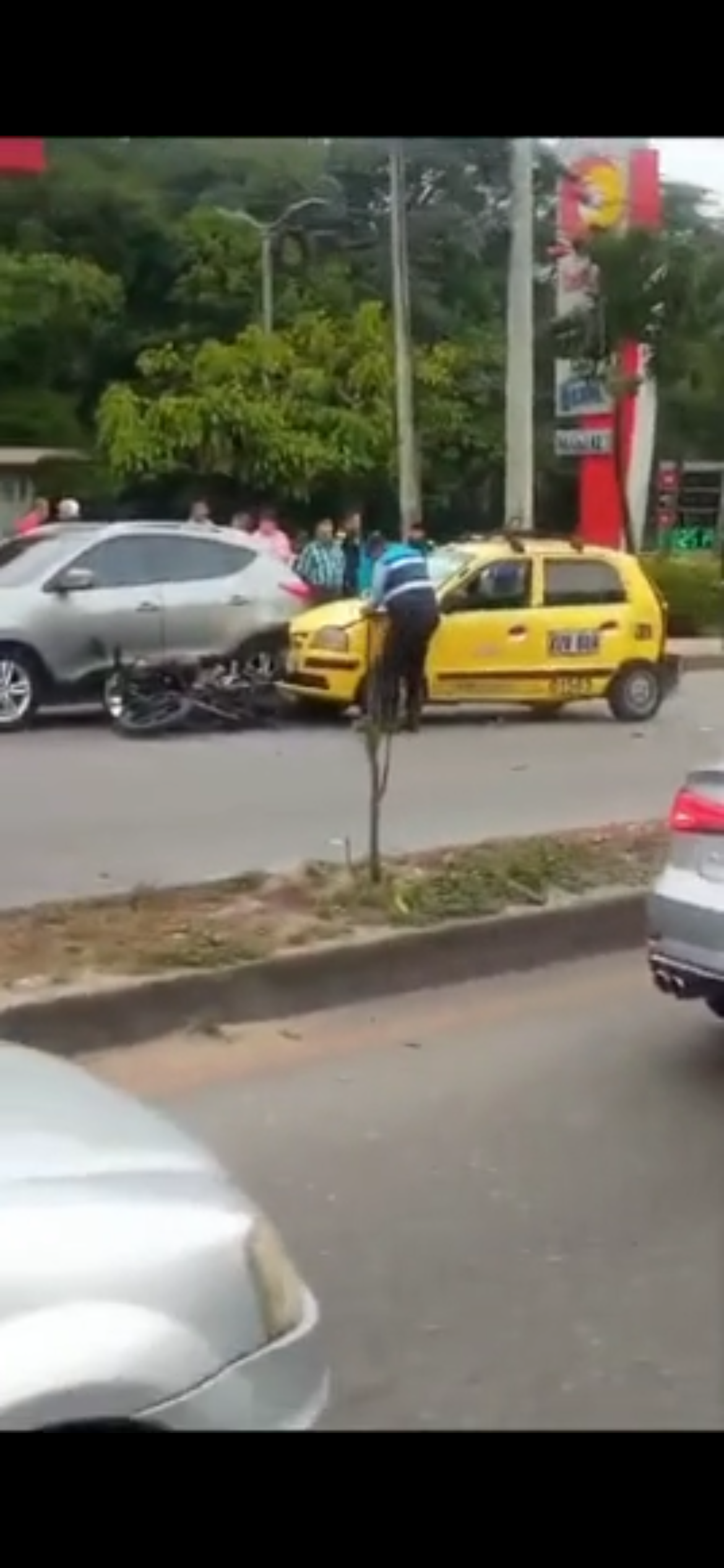 Según testigos, una camioneta que viajaba en sentido Bucaramanga-Girón utilizó un retorno para cambiar de dirección, pero al intentar ingresar a una estación de servicio, un taxi que venía detrás tuvo que frenar de repente. Esto provocó que un Kia Picanto blanco, que no pudo detenerse a tiempo, colisionara violentamente con la parte trasera del taxi, destrozando el vidrio y hundiendo la puerta del maletero.