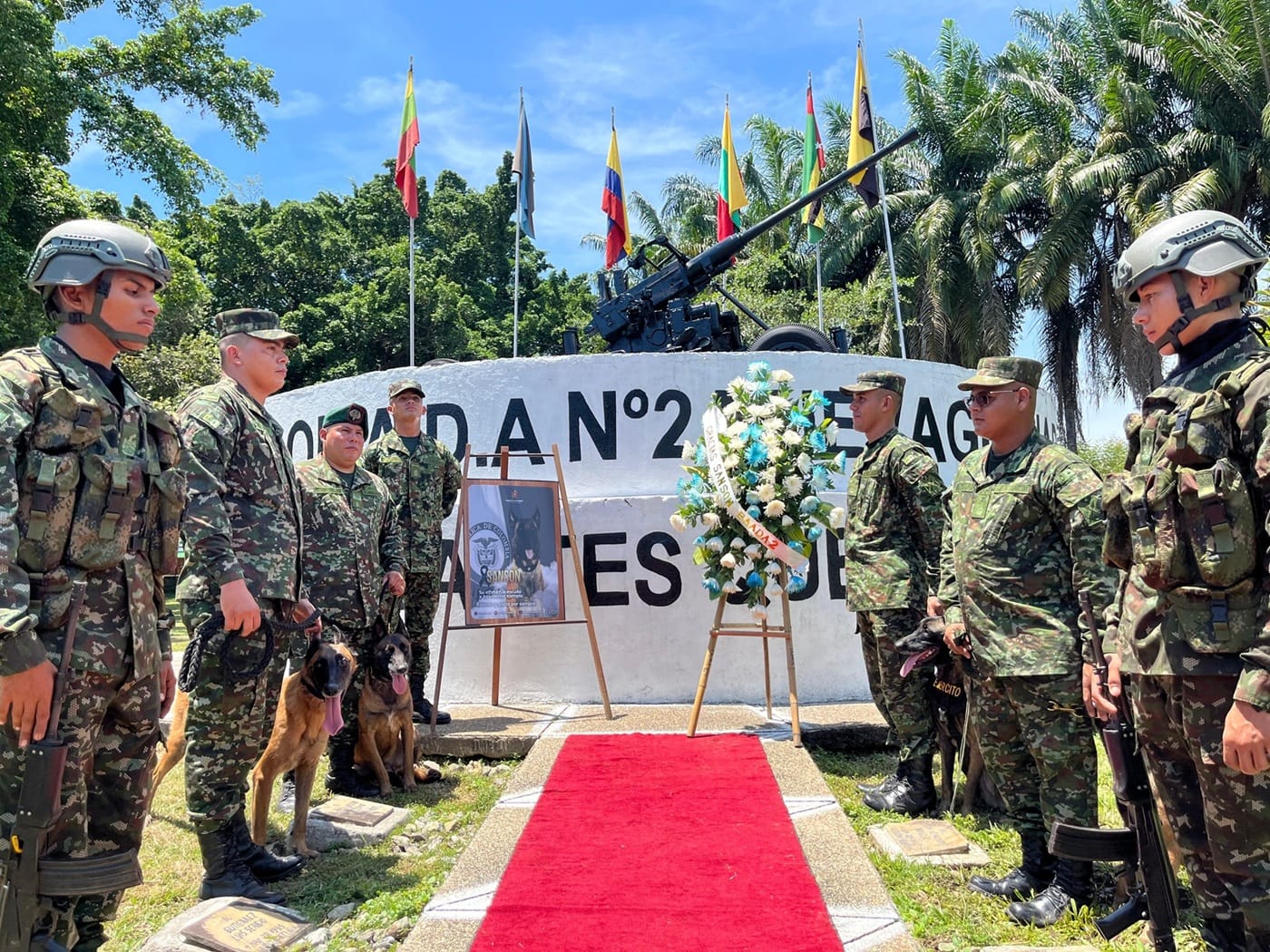Generado por Inteliegenica Artifical (OpenAI)El jueves 17 de julio, en Barrancabermeja, una ceremonia militar de altos honores marcó el final de la vida de un héroe que, a pesar de ser de cuatro patas, entregó todo por la patria. Sansón, el canino que salvó la vida de 36 soldados el 10 de julio al detectar un artefacto explosivo en Yondó, Antioquia, falleció tras complicaciones derivadas de las heridas sufridas en ese atentado.