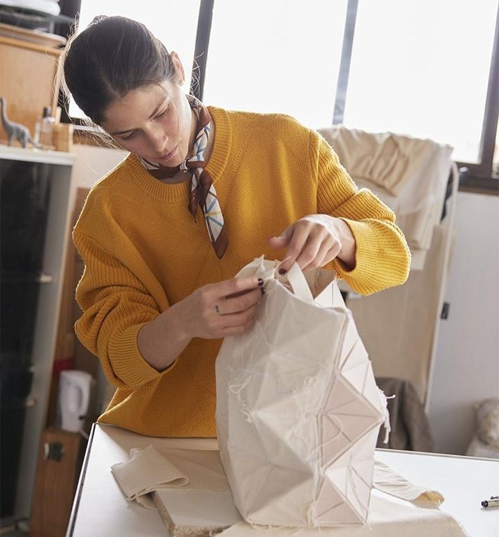 Accesorios como el bolso Stamp Origami, con grabado geométrico y logo metálico, y la bandolera acolchada Pop Origami en forma de cubo, completan la propuesta con una sofisticación que no pasa desapercibida.