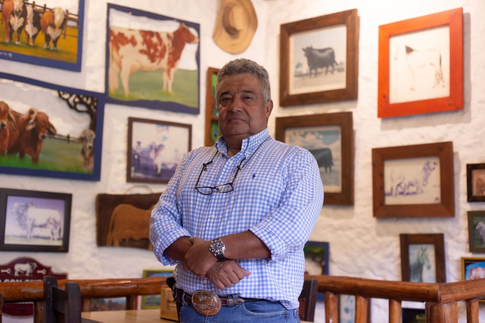 Misael Espinoza Silva, un criador de ganado de la raza Brahman en Colombia, enfatiza la importancia de la ganadería para la seguridad alimentaria. Resalta el valor de las ferias como Agroferia para mostrar el progreso genético y promover los productos ganaderos.