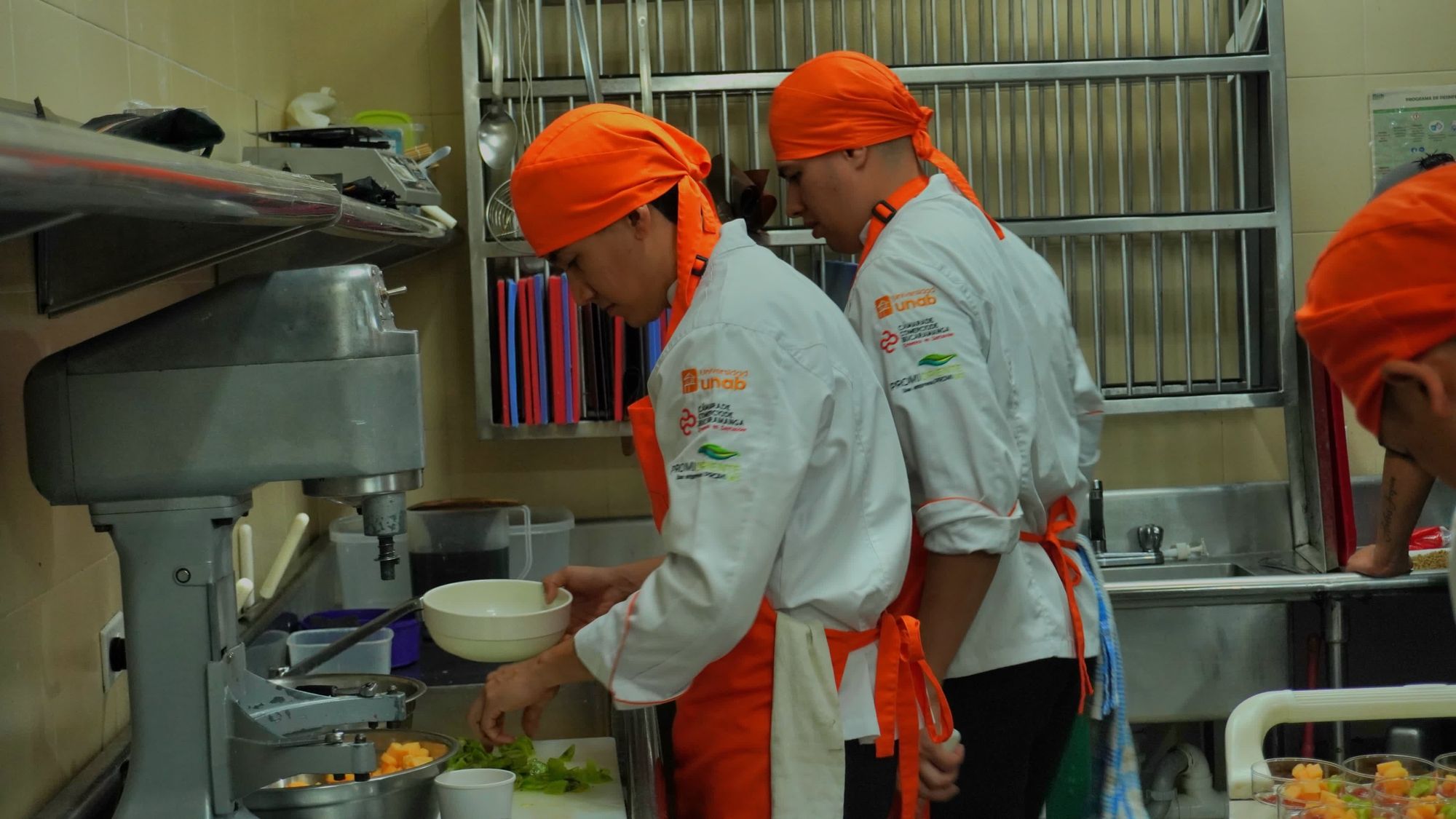 Los participantes, durante sus clases teóricas, recibieron módulos sobre Cocina Básica, Cocina colombiana, Cocina internacional, buenas prácticas de manufactura, entre otros aspectos. Su formación estuvo a cargo del programa de Gastronomía y Alta Cocina de la UNAB, una institución con gran reconocimiento en el territorio en procesos de formación de excelencia, innovación y sostenibilidad.