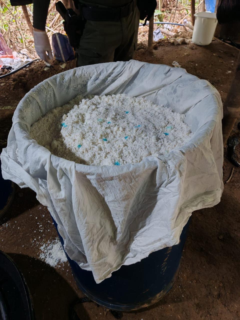 En la operación, tropas del Grupo de Caballería Mecanizado N.° 5, con la Dirección de Antinarcóticos, golpearon las economías ilícitas del Frente de Guerra Nororiental, al ubicar y desmantelar un laboratorio compuesto por tres estructuras artesanales donde se hallaron 515 kilos de clorhidrato de cocaína, más de 200 galones de cocaína en suspensión y 73 galones de base de cocaina en suspensión, así mismo insumos sólidos, líquidos, equipos, máquinas y elementos que serían empleados en la producción de sustancias alucinógenas.
