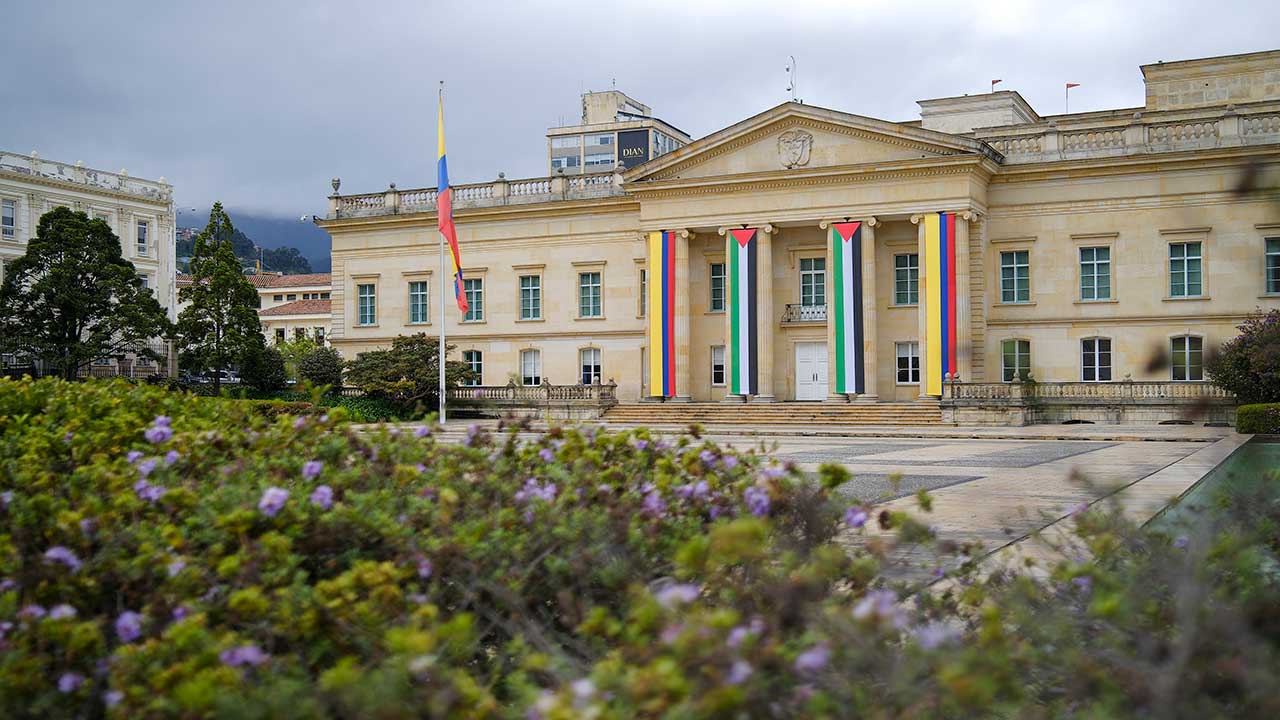 La Casa de Nariño izó banderas de Palestina en su fachada de la Plaza de Armas, como un acto simbólico de respaldo al pueblo palestino.