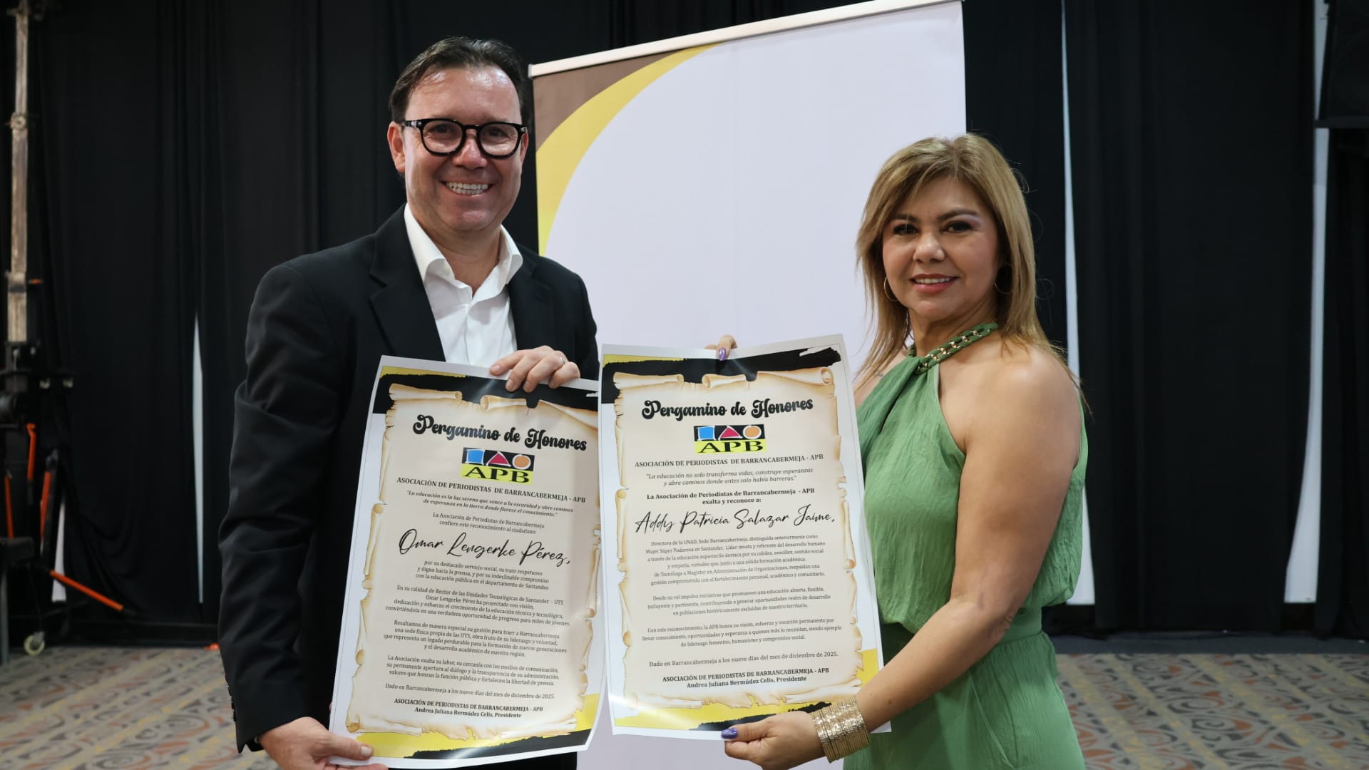 Omar Lengerke Pérez, rector de las UTS, fue exaltado por su servicio social y compromiso con la educación en Barrancabermeja durante los Premios Pluma de Oro. Este evento destaca la excelencia periodística y el talento en la región. La ceremonia fue el 9 de diciembre.