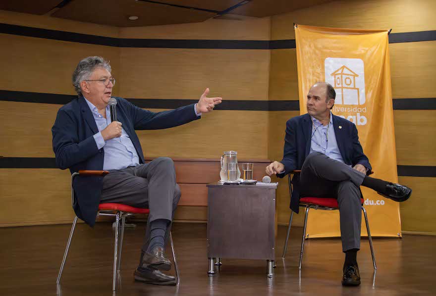 El mundo se está acomodando para enfrentar desafíos globales como la emergencia climática, las crisis alimentarias y las guerras en Europa y Medio Oriente, en contraste, Colombia está volviendo al pasado. Esta afirmación es sostenida por el economista Mauricio Cárdenas Santamaría, exministro de Hacienda entre 2012 y 2018, en la administración de Juan Manuel Santos, quien estuvo conversando con el rector de la Universidad UNAB, Juan Camilo Montoya Bozzi.