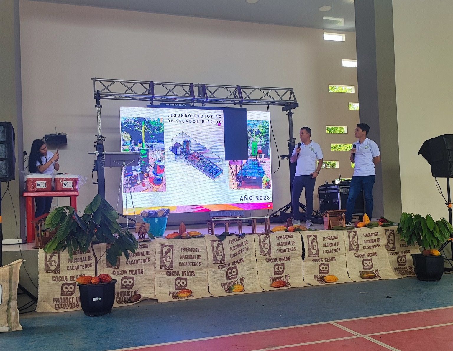 La participación de las UTS incluyó la ponencia “Tecnologías sostenibles aplicadas al secado de alimentos: caso de estudio el cacao”, a cargo del investigador principal Arly Darío Rincón Quintero y el coordinador técnico y de investigación Wilmar Leonardo Rondón Romero, quienes presentaron avances significativos y resultados del proyecto, marcando un logroen la producción de cacao en el departamento.