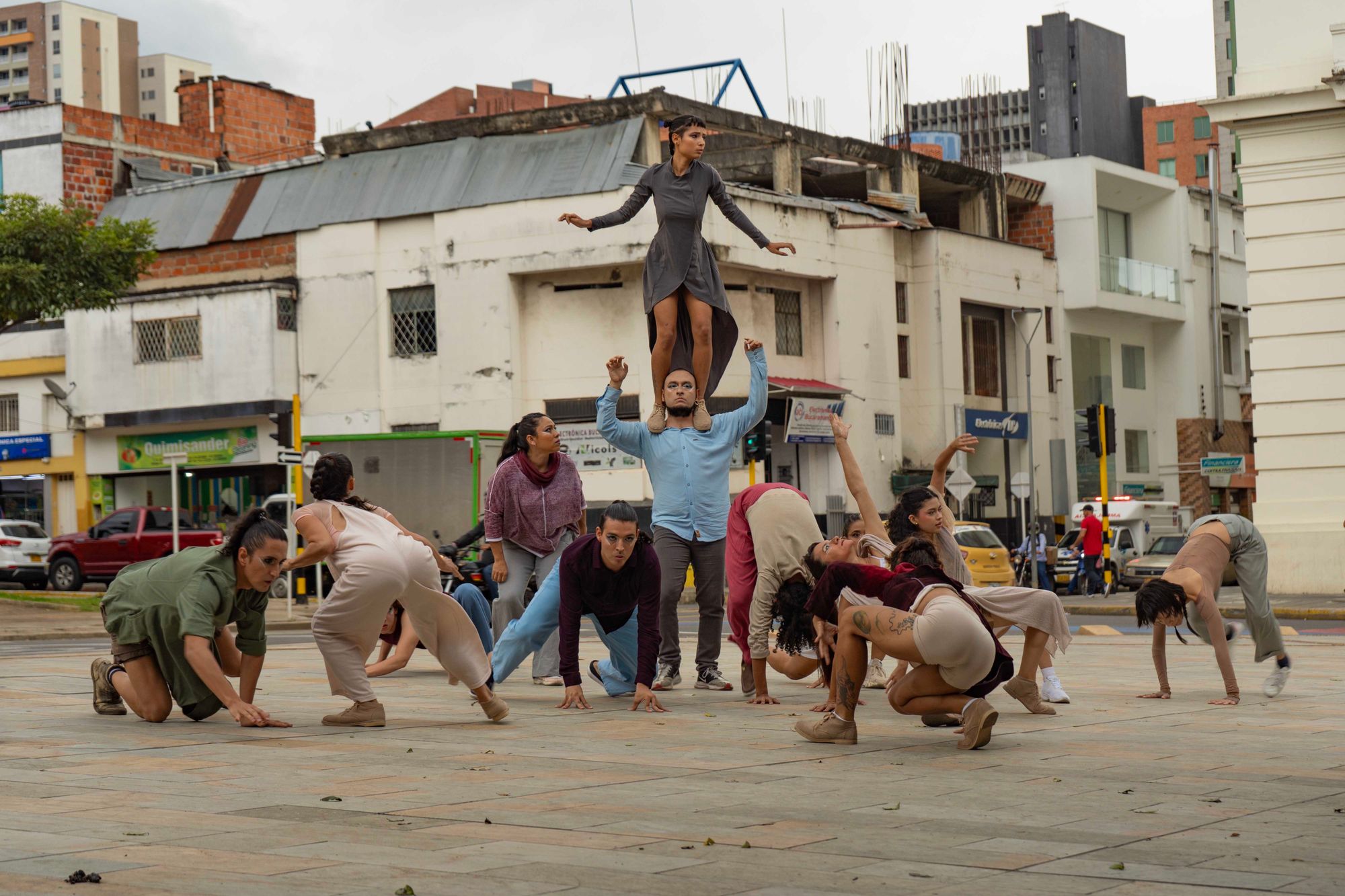El espectáculo denominado “Trashumantes”, que disfrutaron quienes desafiaron la temporada de lluvias y acudieron a este espacio emblemático del centro de la ciudad, fue protagonizado por 15 integrantes del Laboratorio Experimental Cuerpo y Escena, de la Escuela Municipal de Artes de Bucaramanga (EMA), dirigido por la bailarina María Casadiego Arias. Consistió en un diálogo con los elementos físicos del Parque, indagando en lo sutil y en las historias efímeras que allí aparecen y se diluyen.
