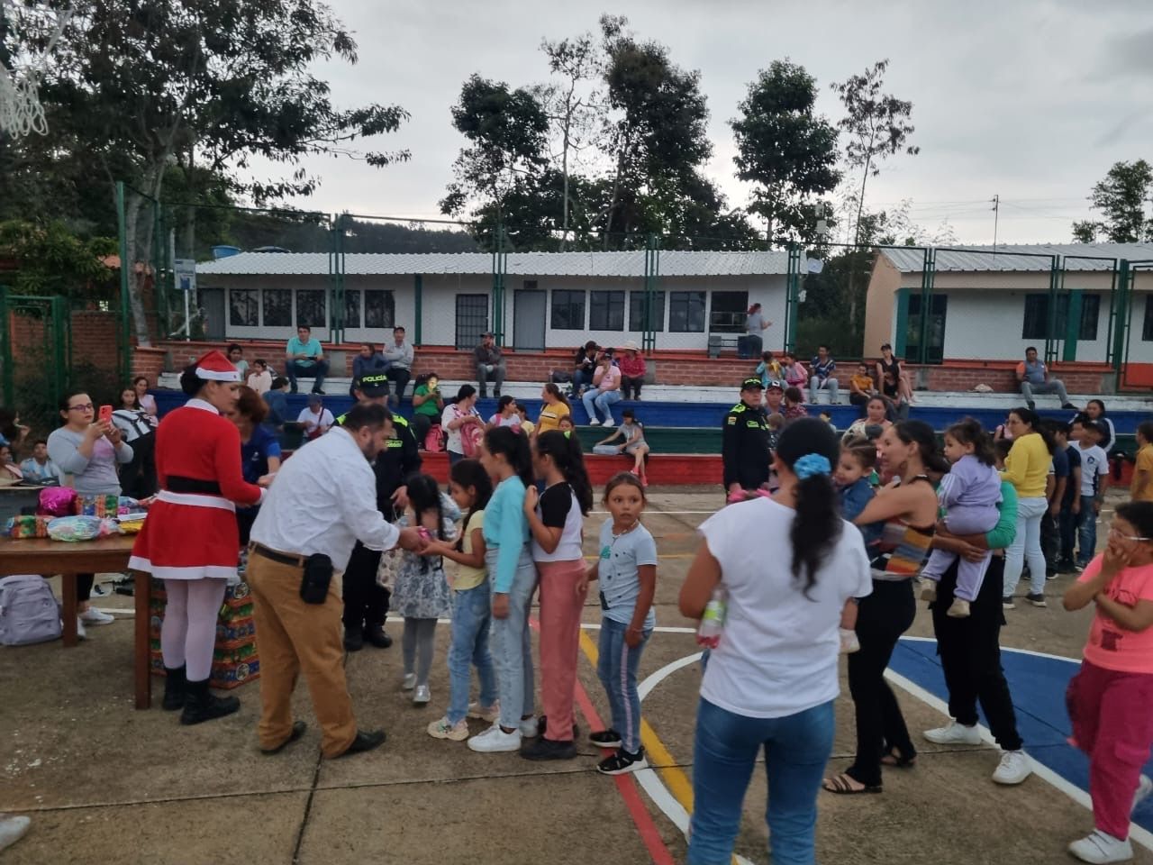 En el marco del Plan Navidad "Familias felices", la Seccional de Protección y Servicios Especiales de la Policía Nacional llevó alegría a la comunidad de Montecitos Bajo, en San Gil. Bajo la dirección del General William Salamanca, Director General de la Policía Nacional, y en colaboración con la rama judicial y la Caja de Compensación Familiar CAJASAN, se realizaron actividades recreativas, pedagógicas y lúdicas para niños, niñas y adolescentes de la vereda.