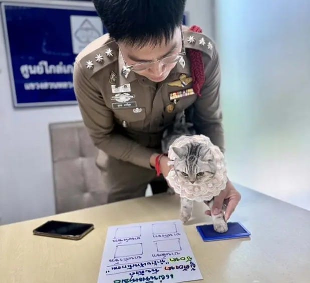 Por atarazar a los agentes del orden en Tailandia. Una gatica fue "arrestada" en Tailandia por morder a policías. Su historia viral hizo reír a todos. ¡Hasta le tomaron huellas de las patas!