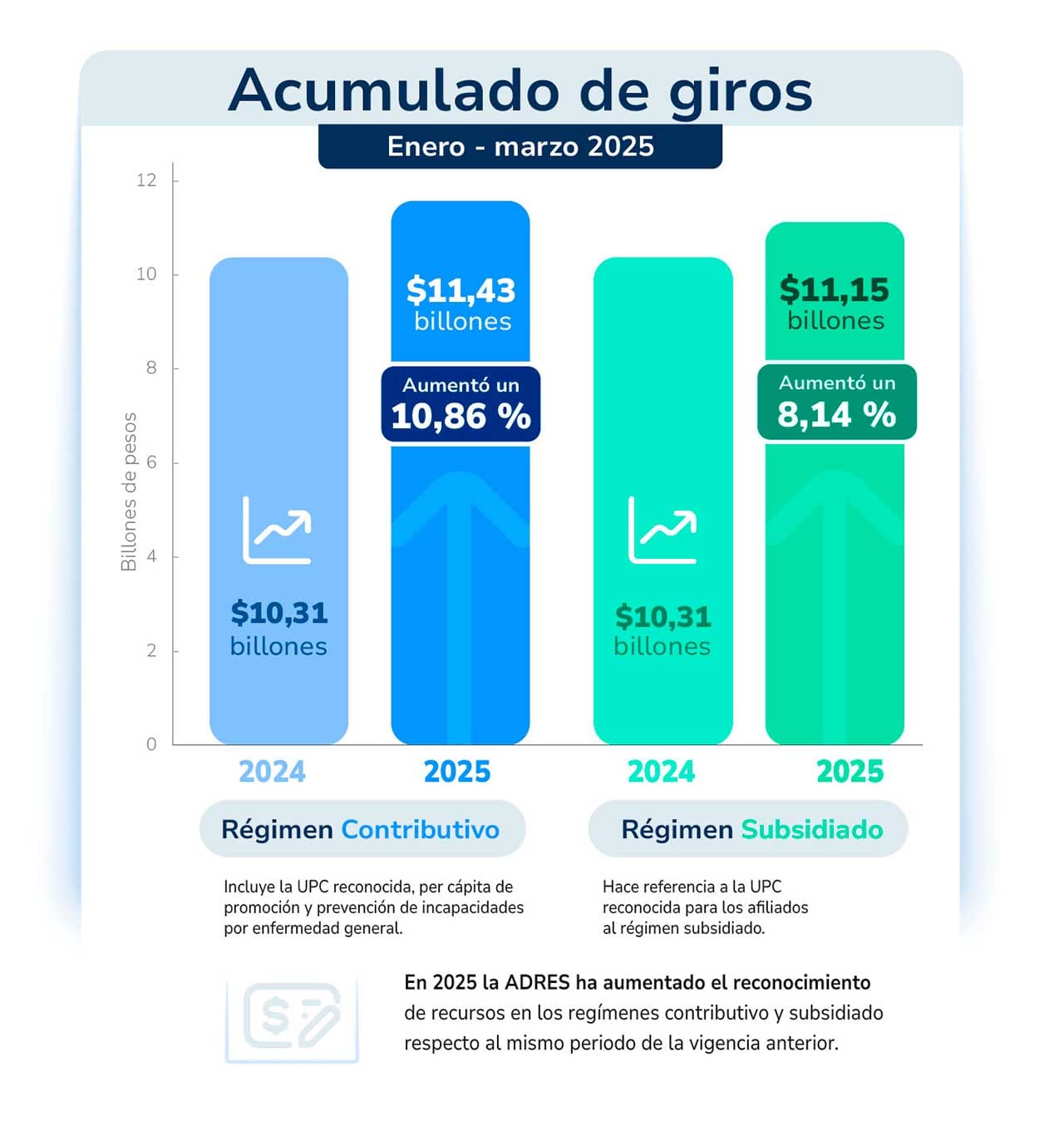 En el primer trimestre de 2025 el giro para clínicas y hospitales del país llegó a $15,3 billones, con un aumento del 134 % respecto al mismo periodo de 2024, cuando se giraron $6,5 billones.