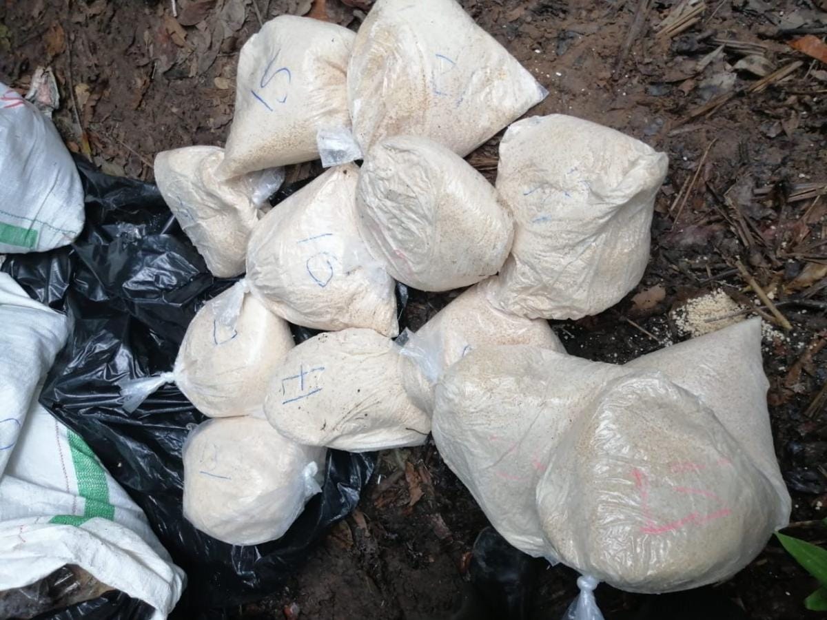 El primer procedimiento se llevó a cabo en la vía Junín – Pedregal, zona rural del municipio de Mallama. Gracias a la información suministrada por un ciudadano, los uniformados ubicaron un vehículo abandonado a pocos metros de un área de prevención vial. Al inspeccionarlo, hallaron dos costales con 50 paquetes envueltos en cinta café, que contenían una sustancia con características similares a la base de coca. El peso bruto del cargamento fue de aproximadamente 100,6 kilogramos.