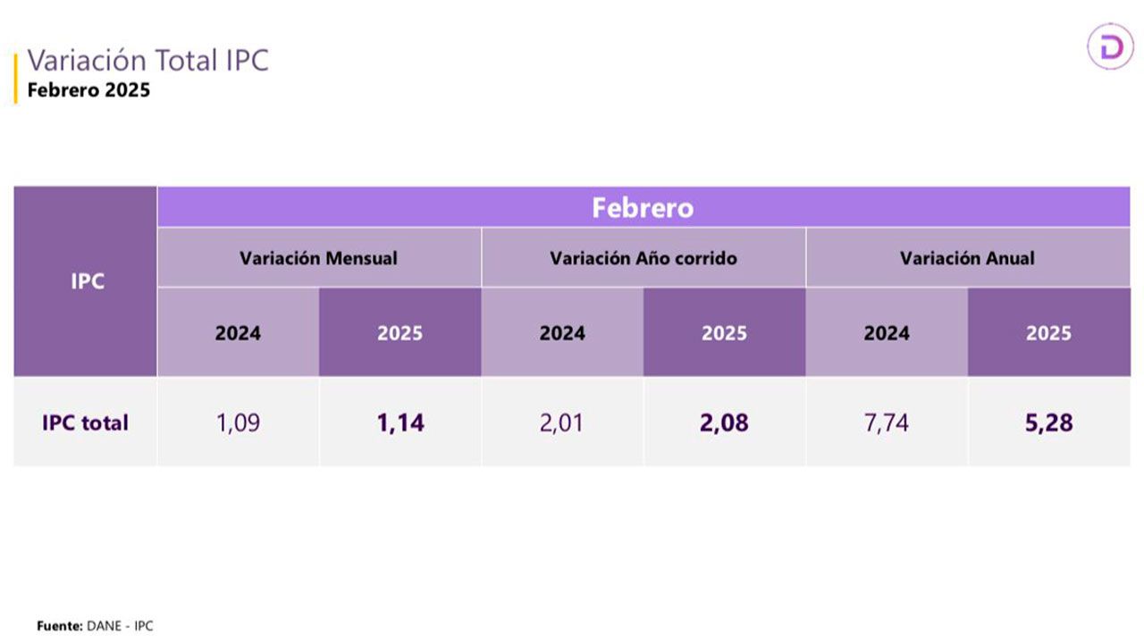 La variación año corrido (enero y febrero) en 2025 fue de 2 %, al igual que la del 2024 también cerró en 2 %.
