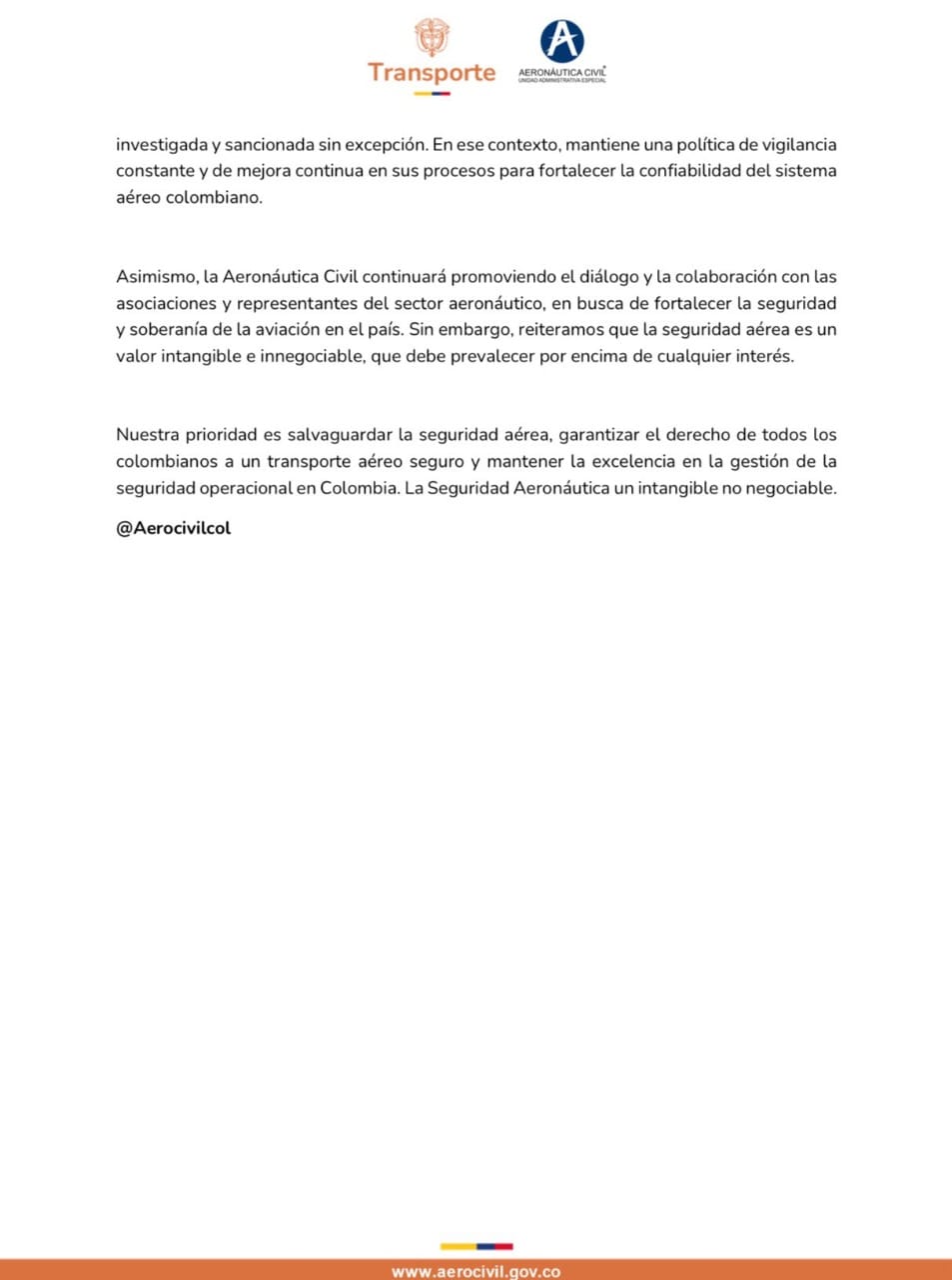 Cinco días después del bochornoso episodio, la Aeronáutica Civil emitió un comunicado reconociendo el hecho y anunciando medidas “contundentes”, aunque tardías, para enfrentar esta grave violación a los protocolos de seguridad.