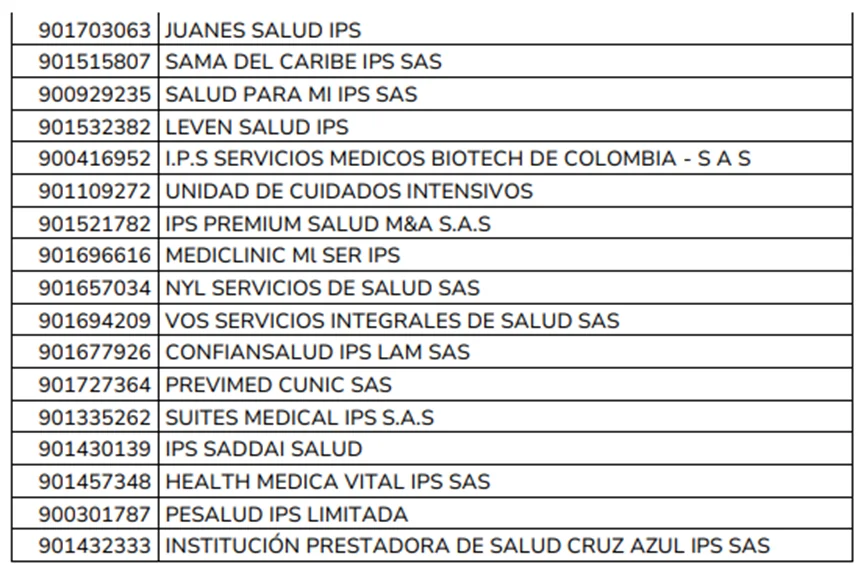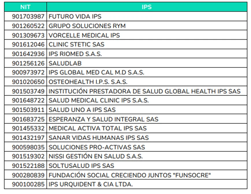 El 12 de septiembre de 2024, ADRES suspendió los pagos a 52 IPS, cuyas facturas sumaban más de 70 mil millones de pesos. Las auditorías realizadas desde 2023 revelaron que varias de estas IPS no cumplían con los requisitos de infraestructura indicados en sus registros. De las 52 instituciones notificadas, 26 no presentaron objeciones, confirmándose la suspensión de sus pagos. Otras 10 apelaron la decisión, pero no lograron revocar la medida.
