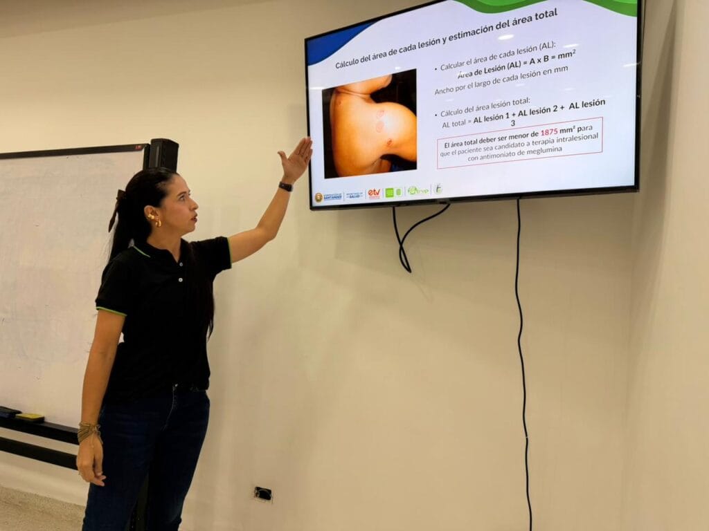 Entre los espacios especializados se destaca la formación en la aplicación intralesional del glucantime, medicamento de primera línea para el tratamiento de la leishmaniasis, así como talleres sobre el uso de pruebas rápidas para el diagnóstico, en concordancia con los lineamientos vigentes del Ministerio de Salud.