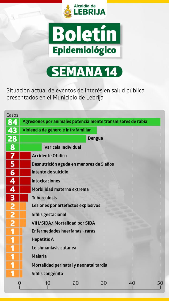 El boletín epidemiológico de Lebrija revela un aumento preocupante en emergencias de salud pública, destacando agresiones por animales transmisores de rabia, casos de dengue y violencia de género, así como otras enfermedades y situaciones críticas.
