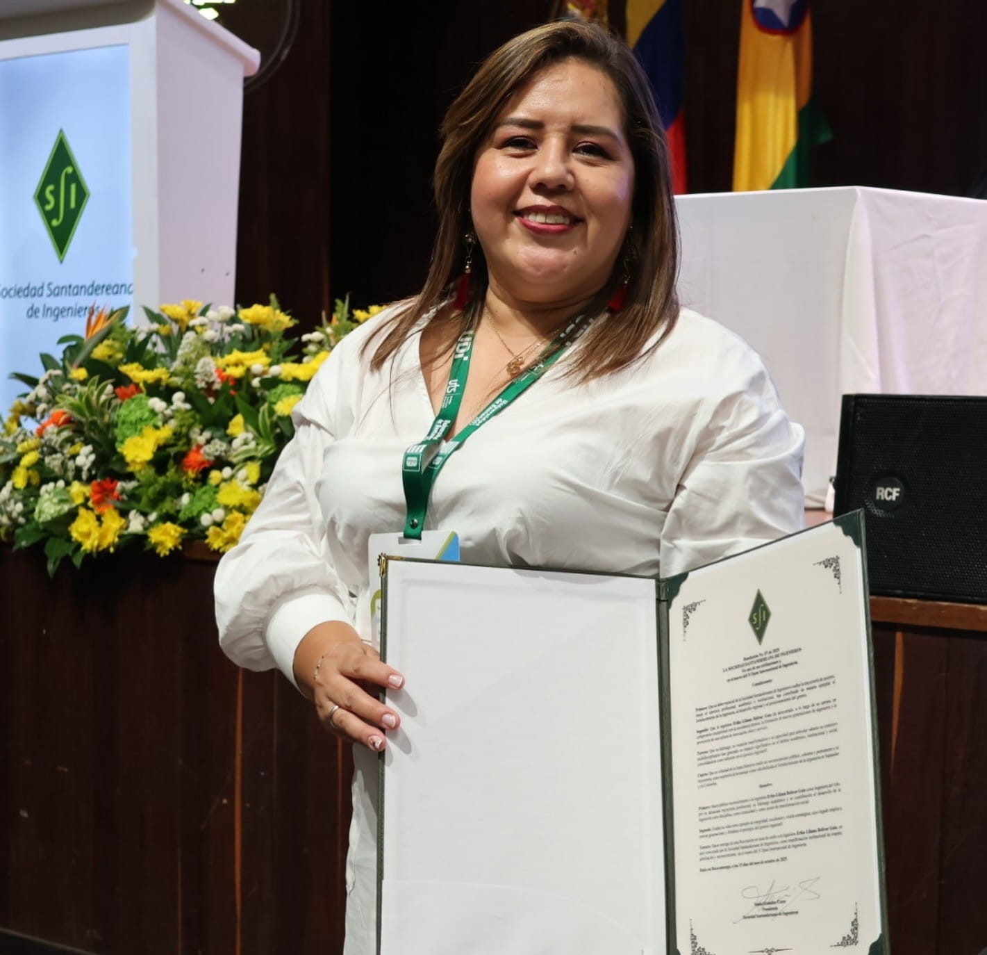Como Ingeniera del Año: la exaltación recayó en la ingeniera Erika Liliana Bolívar, coordinadora académica, por su destacada labor, trayectoria y aporte al desarrollo de la ingeniería santandereana. Logros entregados durante el X Open Internacional de Ingeniería – Ingeniería 360.