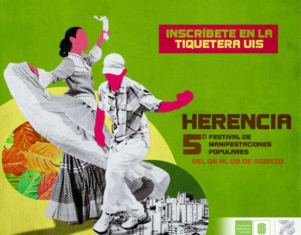 Cumpliendo el propósito institucional de contribuir a la participación en el disfrute de los bienes de la cultura, la Dirección Cultural UIS extiende esta interesante invitación para que, aquellas parejas que disfrutan de la cumbia y todas sus variantes nacionales e internacionales, participen en el Festival de Manifestaciones Populares “HERENCIA”, evento creado en 2016 con la intención de ser una plataforma para la preservación de las diferentes prácticas culturales que se gestan en nuestro país, y que permiten exaltar, celebrar y compartir nuestras identidades culturales.