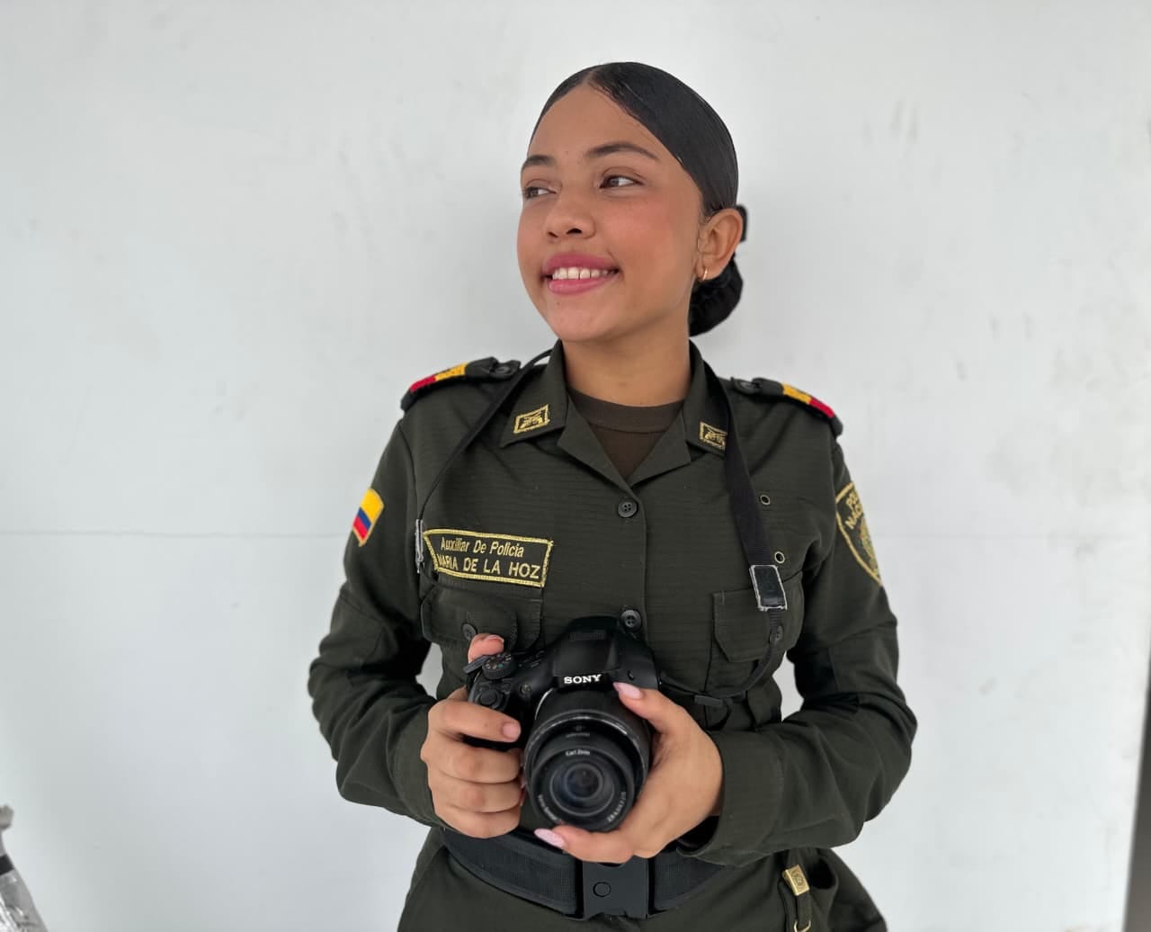 María Alejandra De la Hoz transforma su pasión por la fotografía en la Policía Nacional, capturando la esencia de la labor policial mientras persigue el sueño de ser patrullera, uniendo servicio y arte por su comunidad.