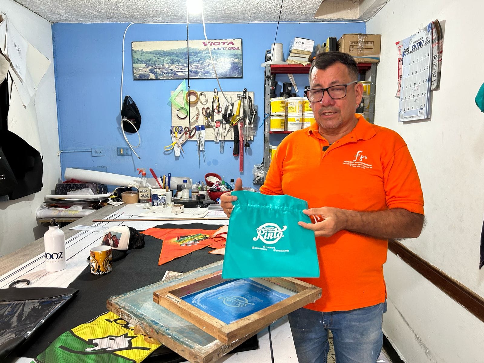 Oscar Franco, técnico en serigrafía, revolucionó el mercado con FR, su emprendimiento en bolsas ecológicas, combinando su arte y formación del SENA, para ofrecer calidad y sostenibilidad en cada producto, haciendo la diferencia en la industria santandereana.