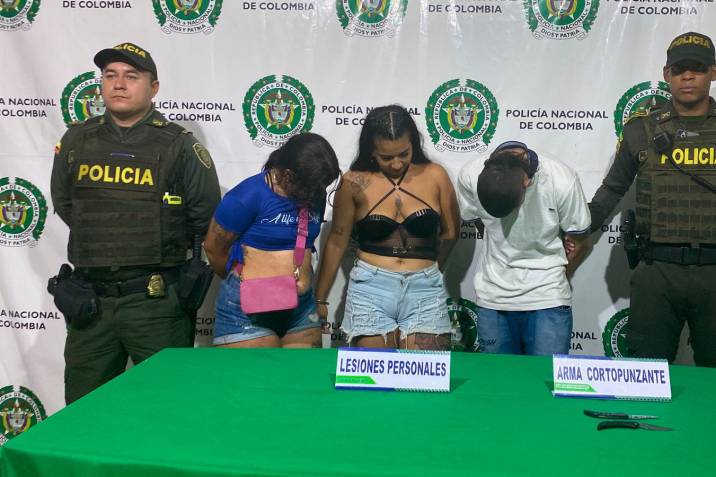 Dos mujeres y un hombre fueron detenidos en Bucaramanga tras apuñalar a tres hombres, dos de ellos ex parejas de las mujeres. Las víctimas se recuperan de las heridas. La policía promueve la tolerancia y resolución pacífica de conflictos.