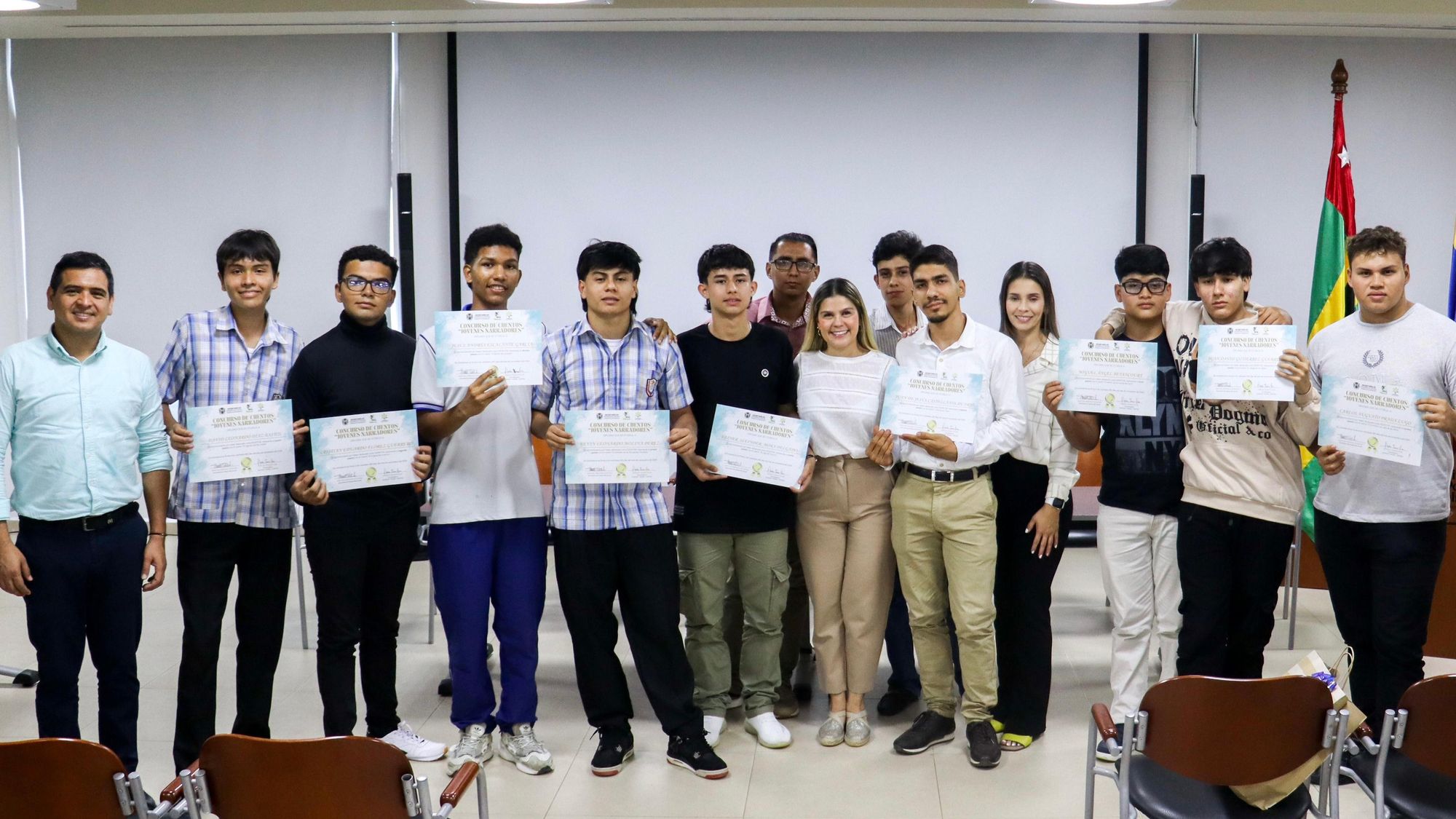 En el marco de la Semana de la Juventud, la Alcaldía de Floridablanca reconoció a 10 jóvenes destacados como promesas de la escritura en el municipio. Durante una emotiva ceremonia, los ganadores recibieron diplomas de reconocimiento y premios especiales otorgados por la gestora social, Natalia Sánchez Silva, en colaboración con: Secretaría de Desarrollo Social, Secretaría de Educación, presidentes del Consejo y Plataforma Municipal de Juventudes. Este homenaje resaltó el valor de la creatividad juvenil y el impacto positivo de los espacios que promueven el arte y la cultura como herramientas de formación integral.