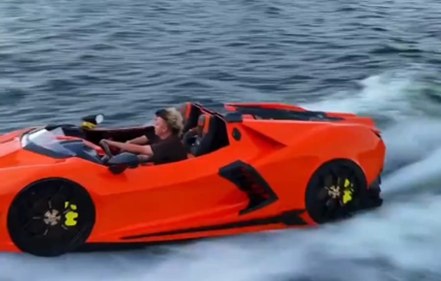 Este vehículo acuático de diseño inspirado en un auto Lamborghini surcó las aguas del embalse Topocoro durante la inauguración del Festival de Verano Topocoro 2025, celebrado en la primera semana de julio.