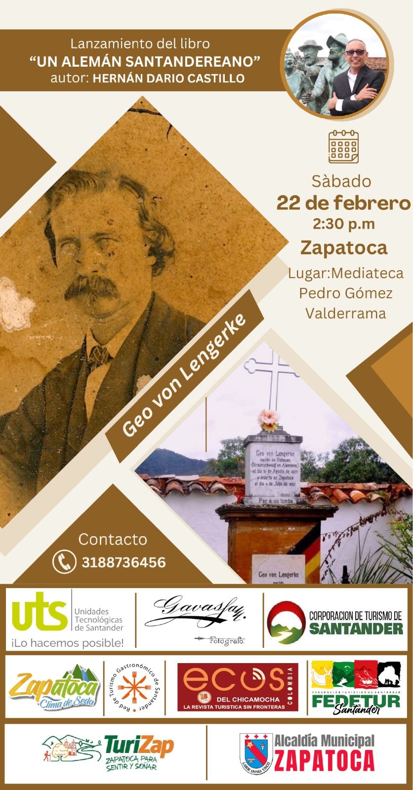 Este sábado 22 de febrero, la Mediateca Pedro Gómez Valderrama, ubicada en el pintoresco municipio de Zapatoca, será el escenario del lanzamiento del libro “Un Alemán Santandereano: crónicas de Geo von Lengerke”, una obra que promete arrojar nueva luz sobre la fascinante vida de uno de los personajes más enigmáticos y significativos en la historia de Santander. Este libro, escrito por Hernán Darío Castillo Quintero en coautoría con el doctor Omar Lengerke Pérez, tataranieto de Geo von Lengerke, busca rescatar el legado de este inmigrante alemán que dejó una profunda huella en la región.