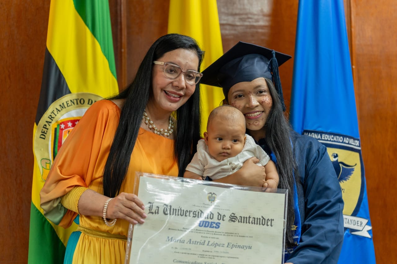 Tras finalizar la secundaria, María Astrid decidió continuar su formación profesional en Bucaramanga. Su empeño y resultados académicos le permitieron acceder a una beca para estudiar Comunicación Social y Periodismo en la Universidad de Santander (UDES), apoyo gestionado y respaldado por la Fundación Mujer y Hogar.