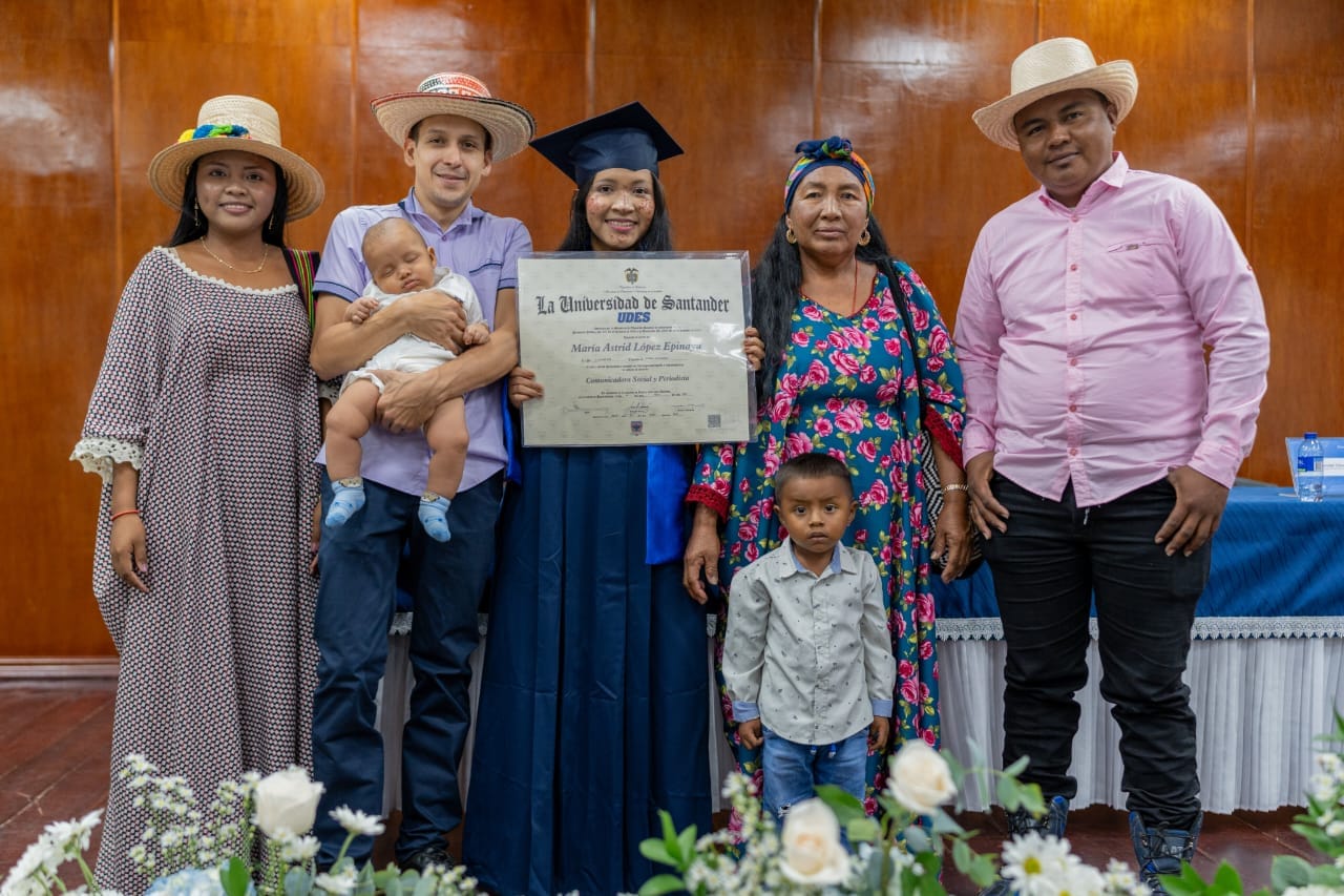 Además, su historia no se detiene en la obtención de un título universitario. Actualmente es beneficiaria del programa Colonia Wayuu, desarrollado en alianza con la organización Techo Colombia. En noviembre recibirá una vivienda propia, un espacio que representa estabilidad y continuidad para su proyecto de vida.