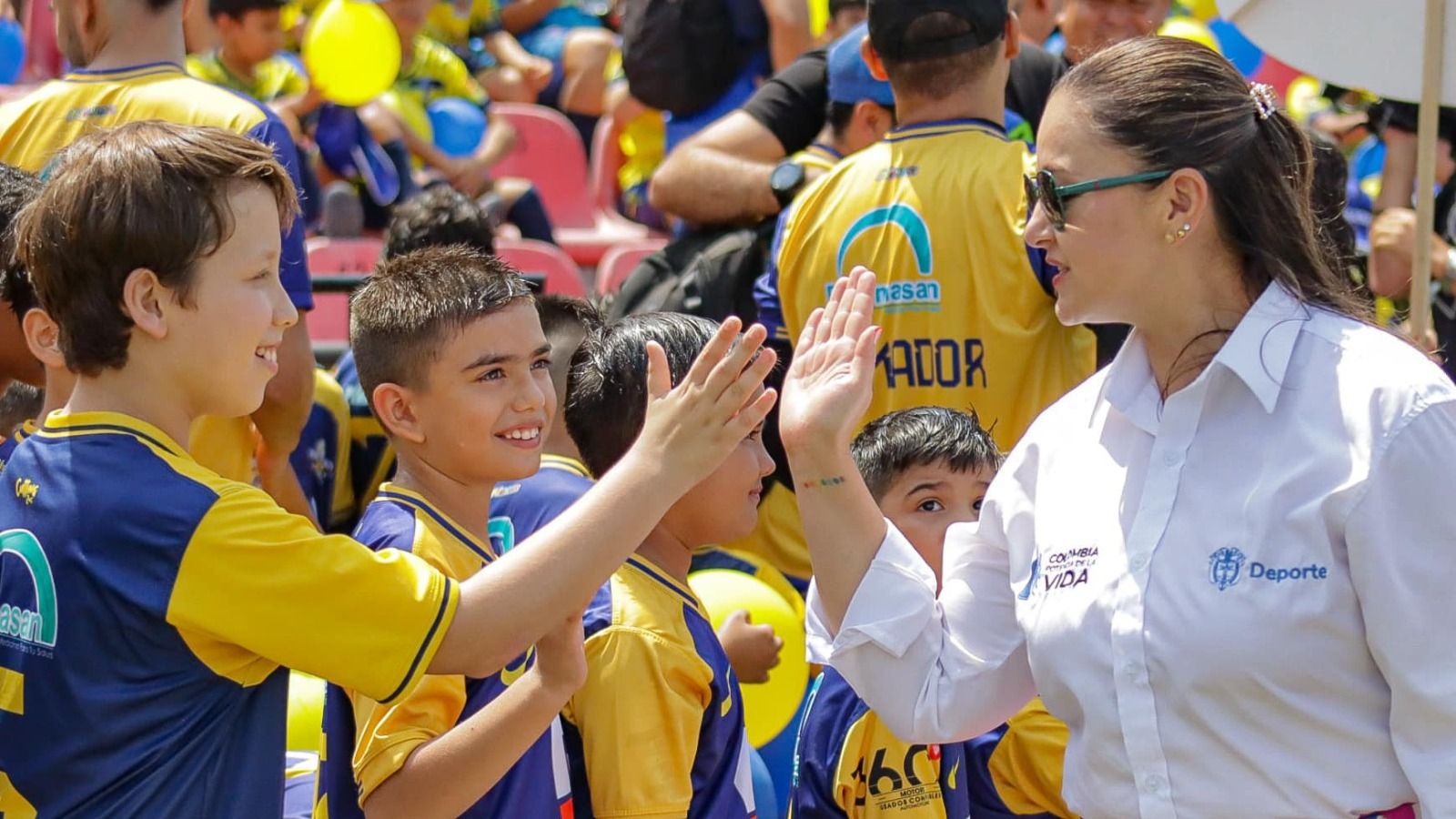 Luz Cristina López, ministra del deporte, estuvo este domingo en Bucaramanga en la inauguración de los torneos de la Liga Santandereana de fútbol del 2024 en el Estadio Alfonso López, escenario que contó con la presencia de cerca de 15 mil niños y jóvenes de 800 clubes del departamento.