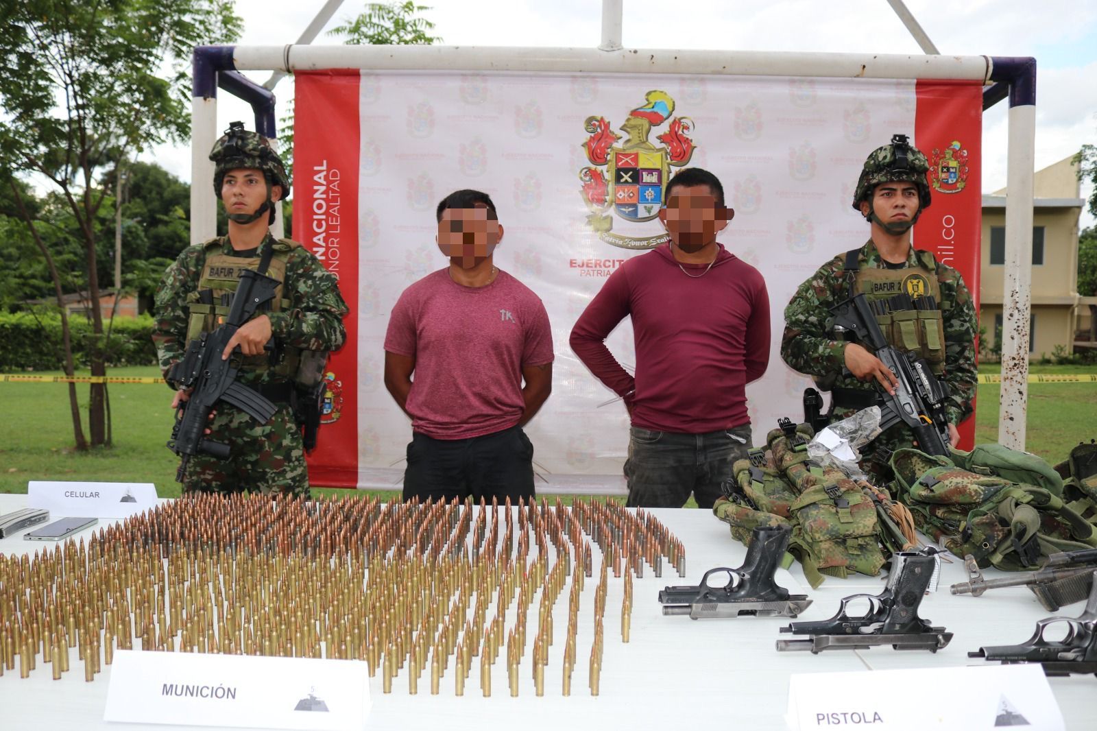 Para garantizar la seguridad e integridad de la comunidad, unidades del Ejército aseguraron la zona. En el lugar se incautaron fusiles, pistolas, cargadores, munición de varios calibres, material de intendencia, pasamontañas, pañoletas alusivas al ELN y equipos de comunicación.