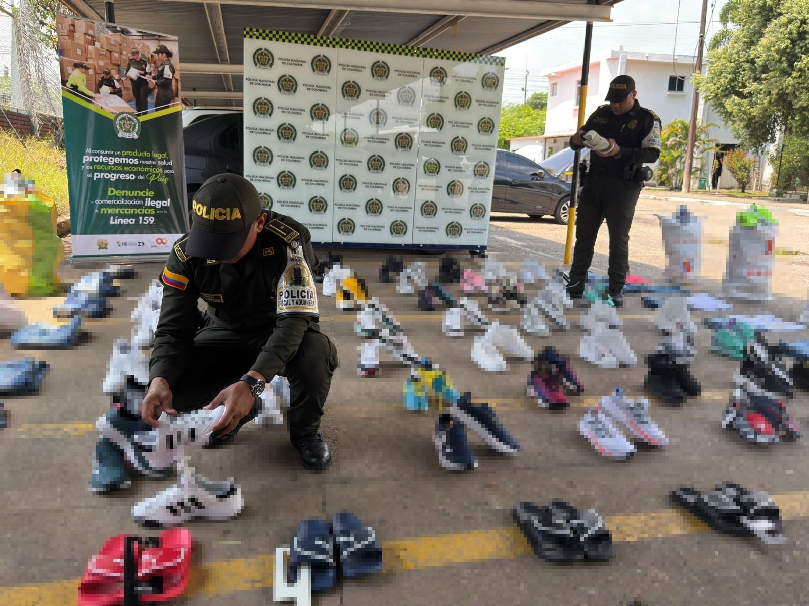 Entre los artículos incautados se encontraban 208 pares de calzado y 210 prendas de confección, con un valor comercial que supera los 61 millones de pesos.