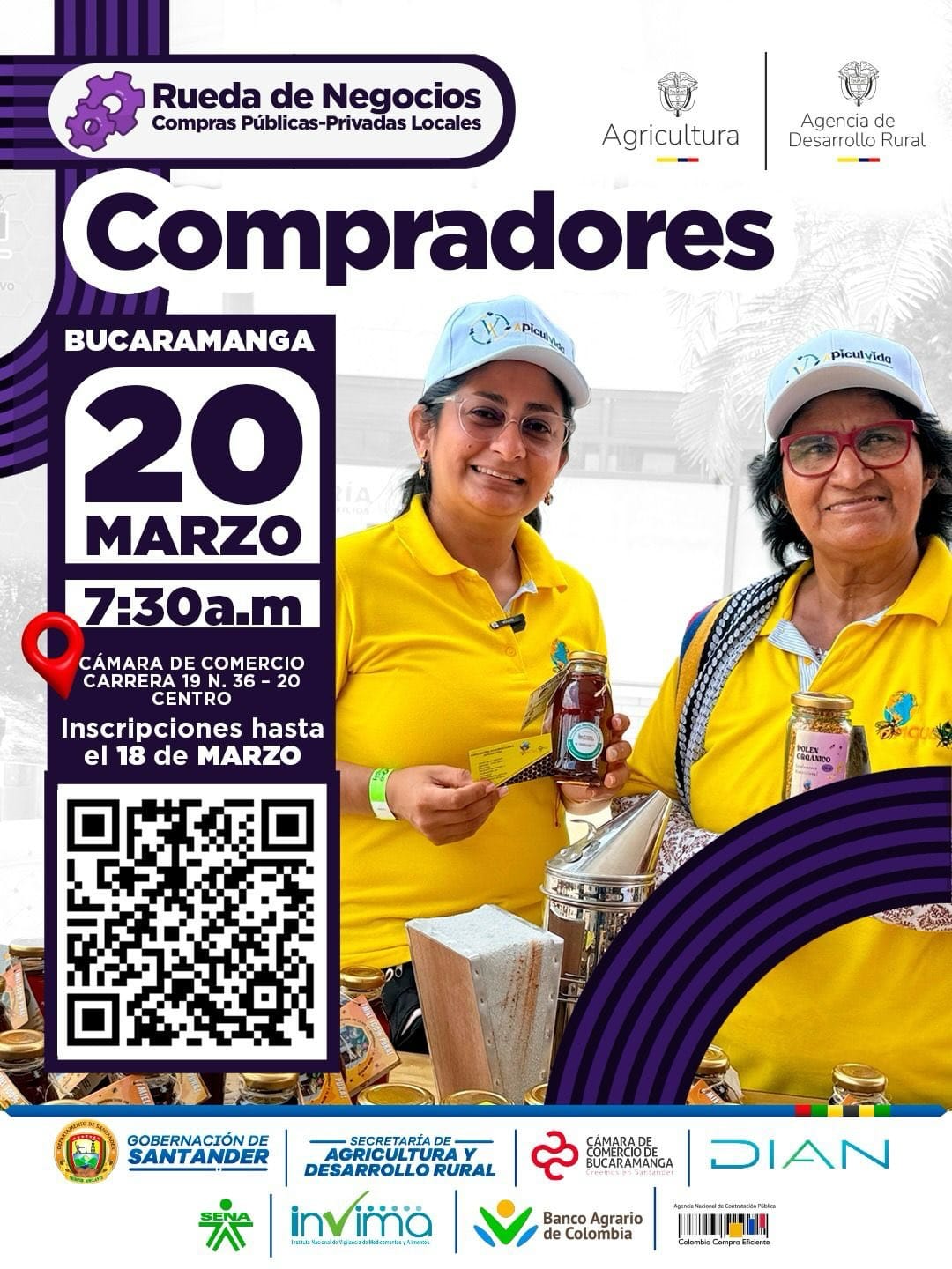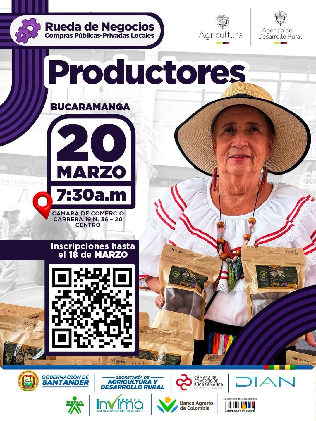 La Gobernación de Santander a través de la secretaría de Agricultura y Desarrollo Rural anunciaron la gran ‘Rueda de Negocios Compras Públicas – Privadas Locales’, un evento enmarcado en la estrategia de acción unificada que busca conectar directamente a pequeños y medianos productores con grandes compradores del departamento.