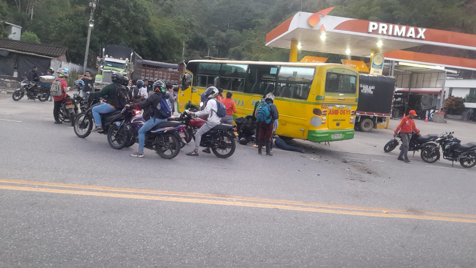 Un motociclista identificado como Johan Leon murió al chocar frontalmente contra un bus en Vijagual, Bucaramanga. El accidente ocurrió poco después de las 6 a.m. y causa congestión en la zona mientras se realiza el levantamiento del cuerpo.