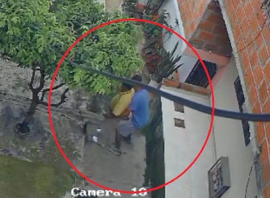Un delincuente, de piel morena y con camiseta azul, pantaloneta gris y tenis, siguió al adulto mayor y lo interceptó por detrás.