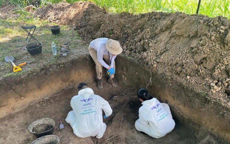“En el marco de la implementación de la investigación humanitaria y extrajudicial del Plan Regional de Búsqueda Puertos del Magdalena Medio, la Unidad de Búsqueda de Personas dadas por Desaparecidas (UBPD) logró la recuperación de cuatro cuerpos en esta tercera fase de intervención en el cementerio municipal de Puerto Triunfo”, informó Daladier Jaramillo Rueda, coordinador del equipo de la UBPD en la región del Magdalena Medio.